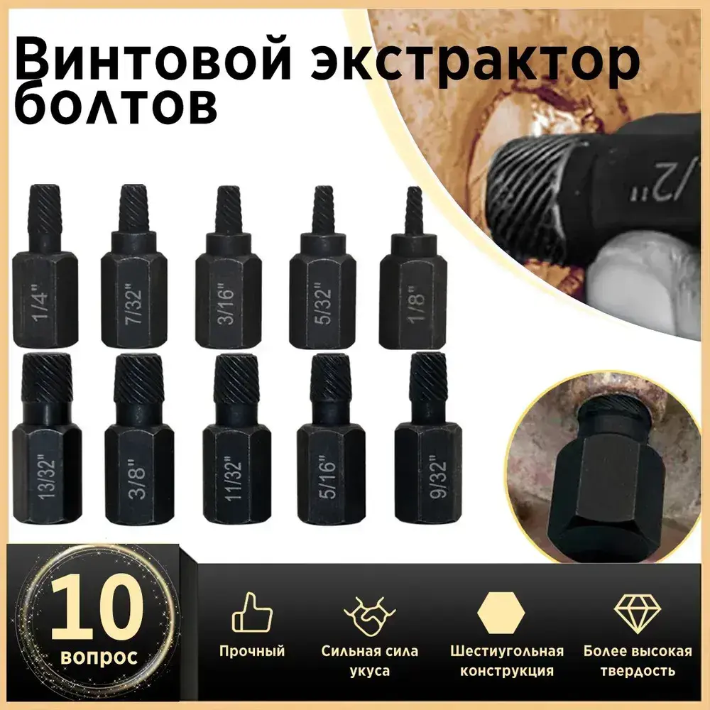 10 шт. Набор экстракторов для тяжелых условий эксплуатации Набор экстракторов для винтов и болтов для удаления сломанных винтов, болтов, шпилек, фитингов