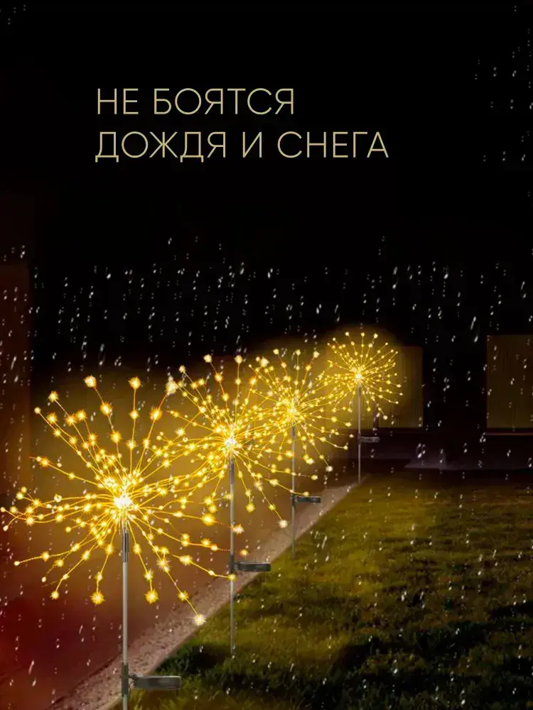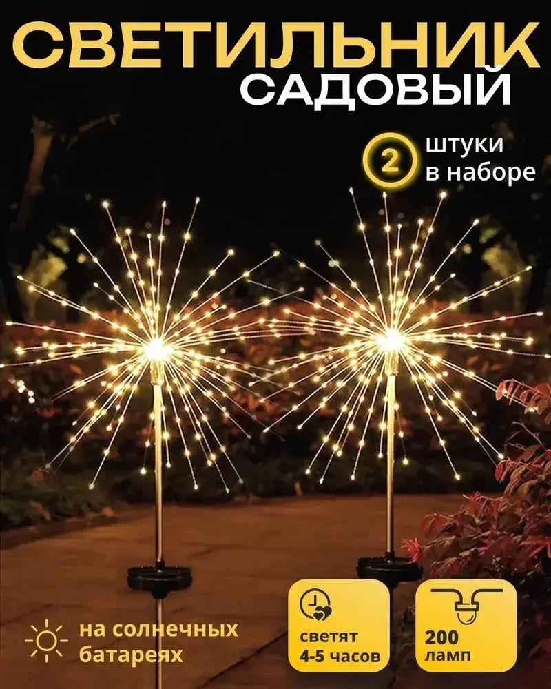 2 шт. Декоративный садовый уличный светильник по 200 ламп на солнечной батарее "Фонарик Фейерверк"