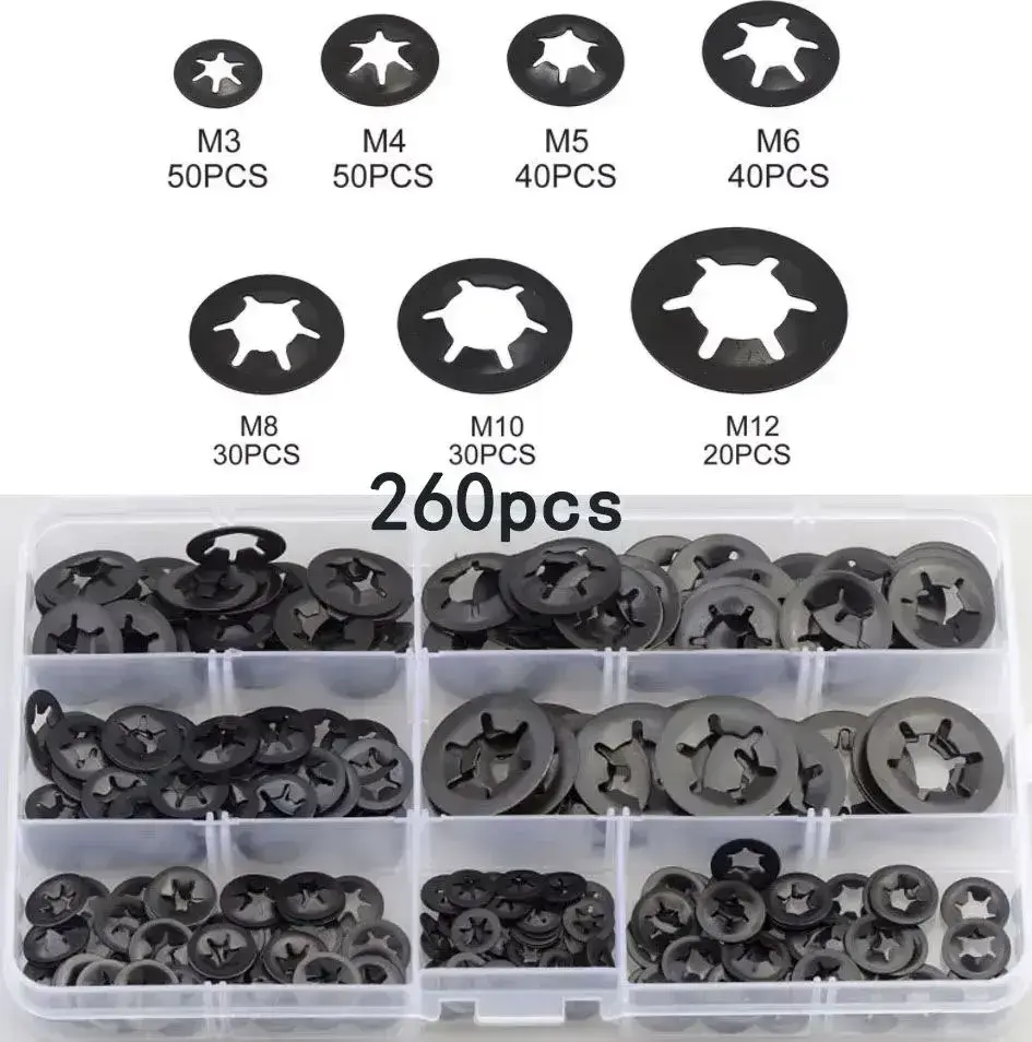 260шт Зубчатые стопорные шайбы стопорные шайбы starlock M3-M12
