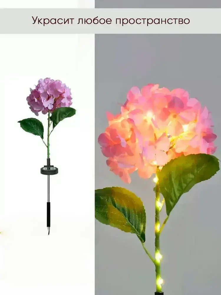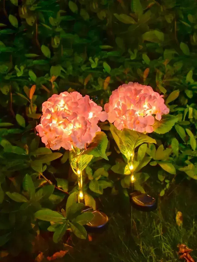 2шт. Декоративный садовый уличный светильник на солнечной батарее "Фонарик Гортензия Розовая"