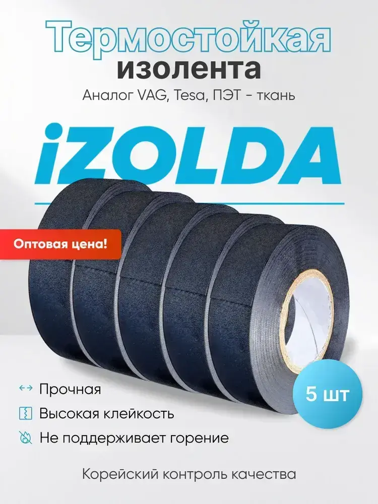5 штук, Изолента (термостойкая) iZOLDA t1915 черная, аналог VAG TESA