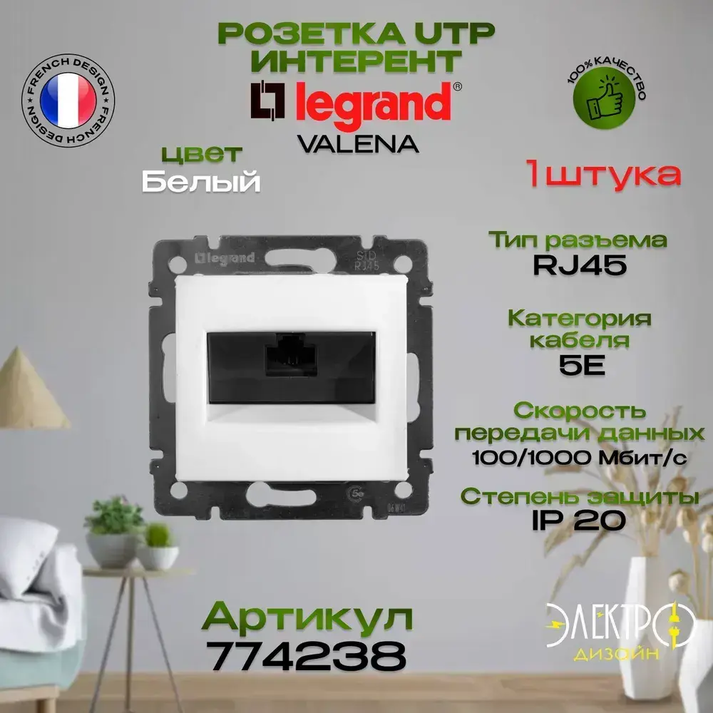 774238 Legrand Valena Розетка интернет c портом RJ45 Белая 774238 1 шт