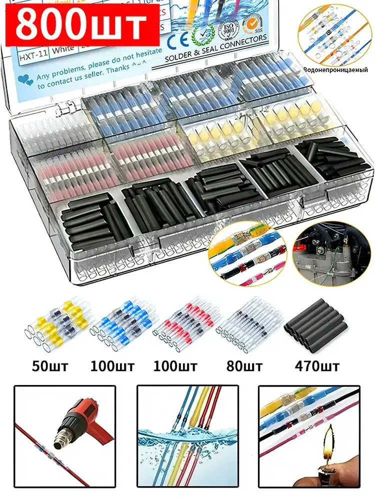 800шт Наборы термоусадки с припоем и водонепроницаемыми кольцами, Превосходная герметичность и надежность