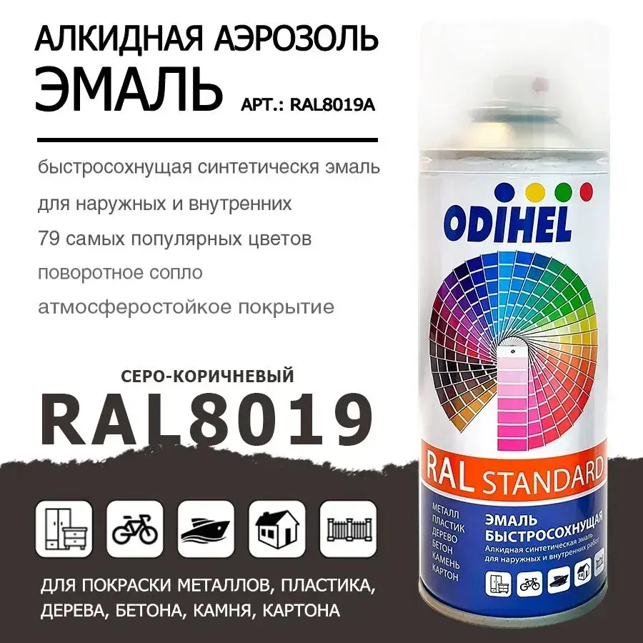 Аэрозоль эмаль (спрей) алкидная ODIHEL RAL8019 Серо-коричневый 520мл
