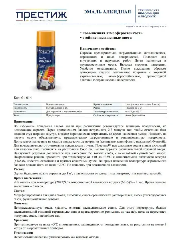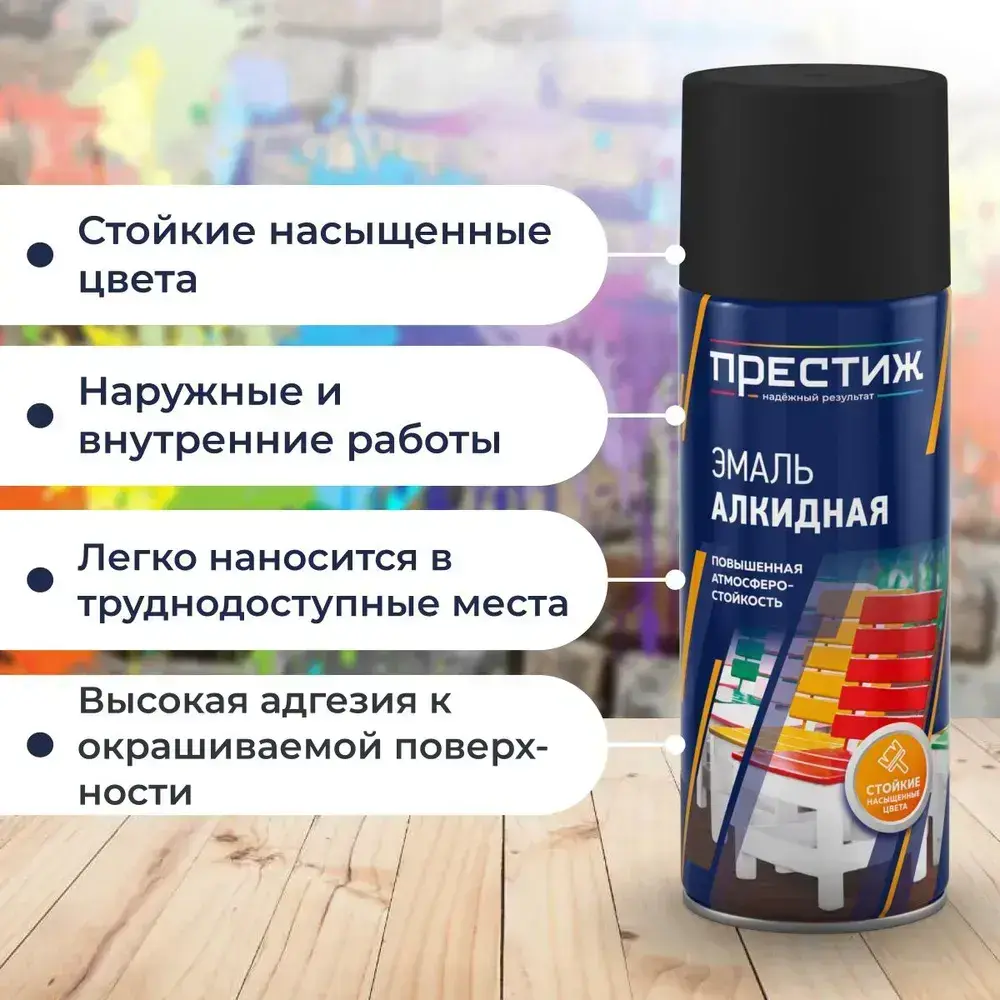 Аэрозольная краска ЧЕРНАЯ ГЛЯНЦЕВАЯ Престиж 425 МЛ. Аэрозоль для металлических, деревянных и иных поверхностей.
