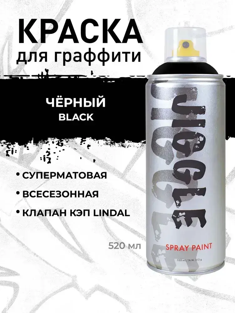 Аэрозольная краска для граффити в баллончике JIGGLE PRO суперматовая, 520 мл, BLACK / Чёрный