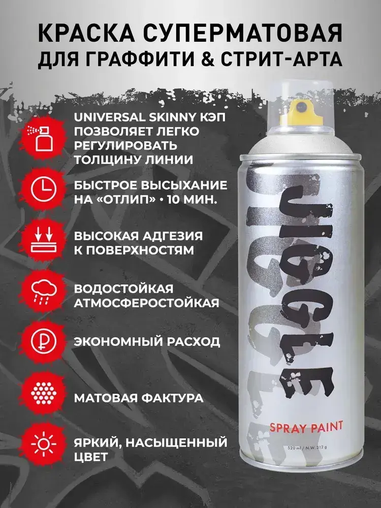 Аэрозольная краска для граффити в баллончике JIGGLE PRO суперматовая, 520 мл, CHROME SILVER / Хром серебро