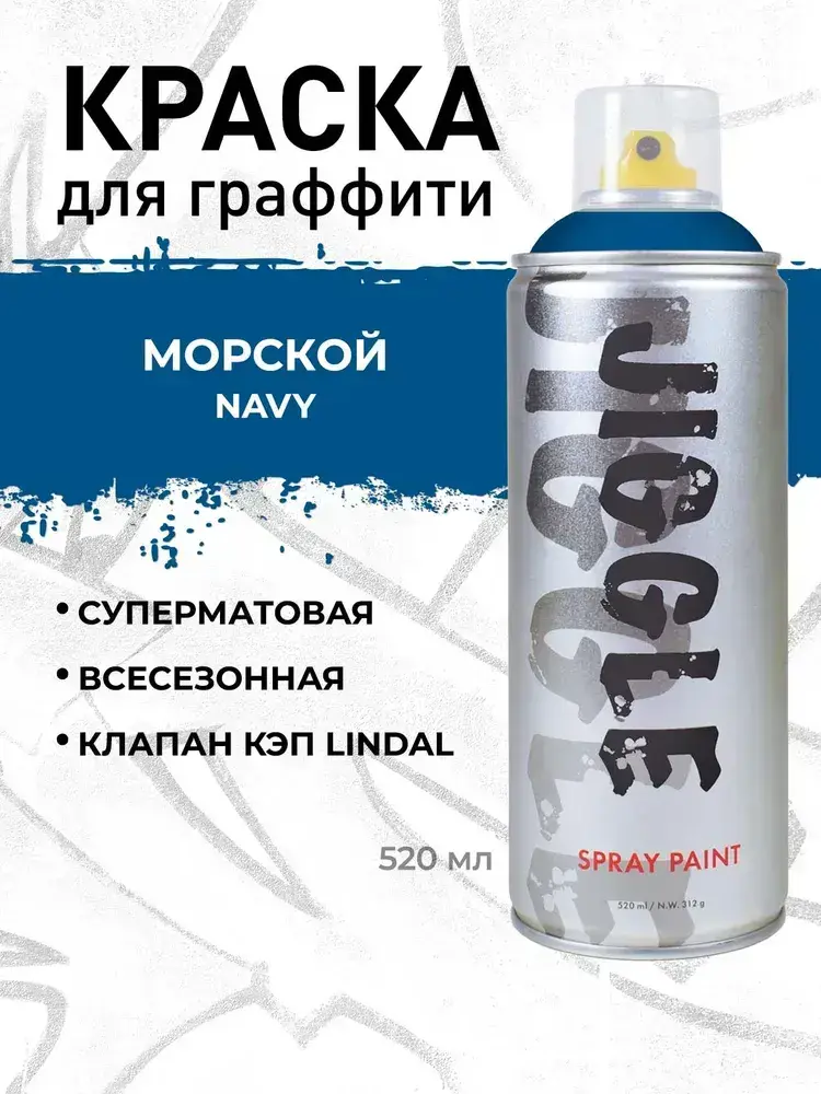 Аэрозольная краска для граффити в баллончике JIGGLE PRO суперматовая, 520 мл, NAVY / Морской