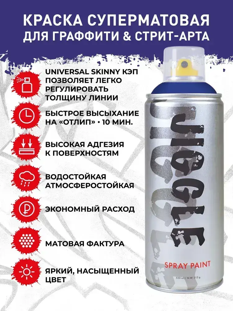 Аэрозольная краска для граффити в баллончике JIGGLE PRO суперматовая, 520 мл ULTRAMARINE / Ультрамарин