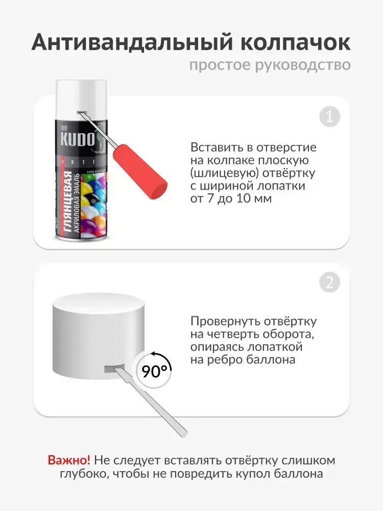 Аэрозольная краска KUDO "Эмаль универсальная быстросохнущая RAL в баллончике" Акриловая, Глянцевая, 0.52 л, Белая RAL 9003