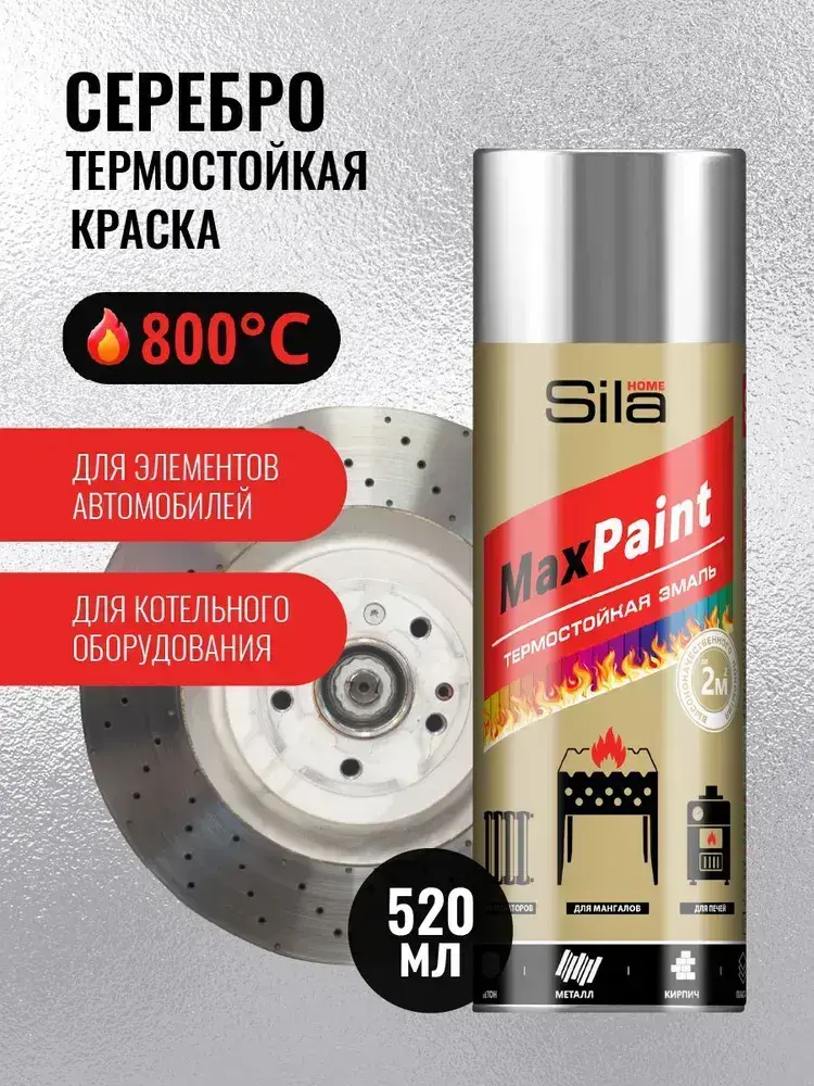 Аэрозольная краска Sila Термостойкая Серебро, до +800 градусов, антикоррозионная матовая, 520мл