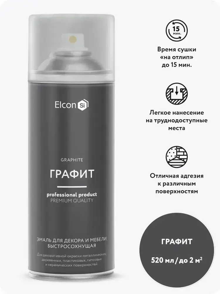 Аэрозольная краска в баллончике Elcon для мебели и декора, акриловая, быстросохнущая, 0.52 л, графит