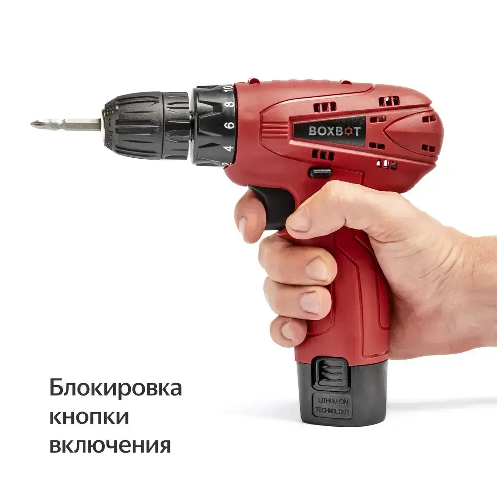 Аккумуляторная дрель-шуруповерт Boxbot, 12 В, 2 АКБ 1.3 А ч, в кейсе, CD12-2
