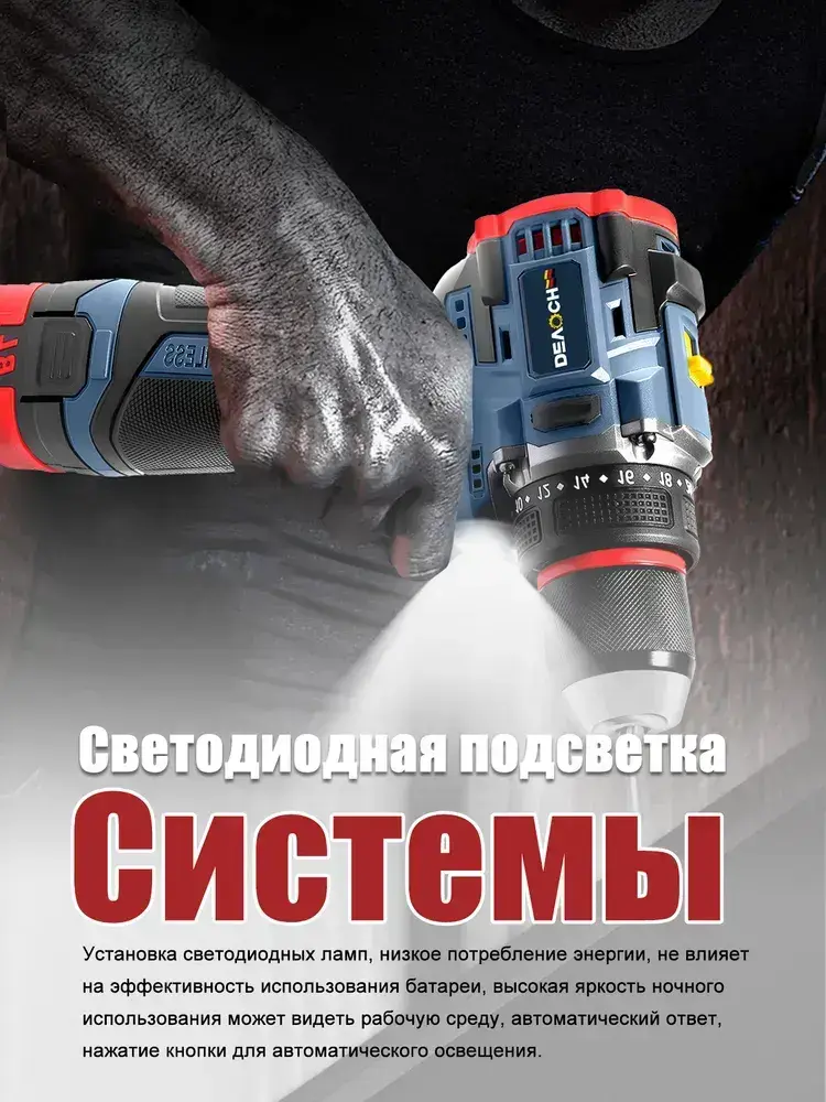 Аккумуляторный бесщеточный шуруповерт с 2 АКБ, крутящий момент 85 Нм