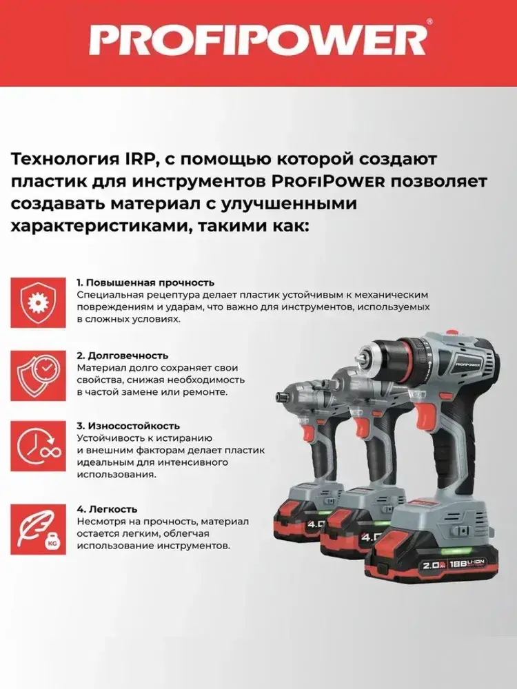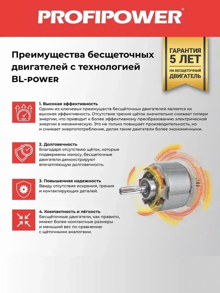 Аккумуляторный шуруповерт бесщеточный Profipower MKBL-18B (Li-ion-2шт, 18В, 2.0Ач, З/У, 0.8-10 мм, кейс)