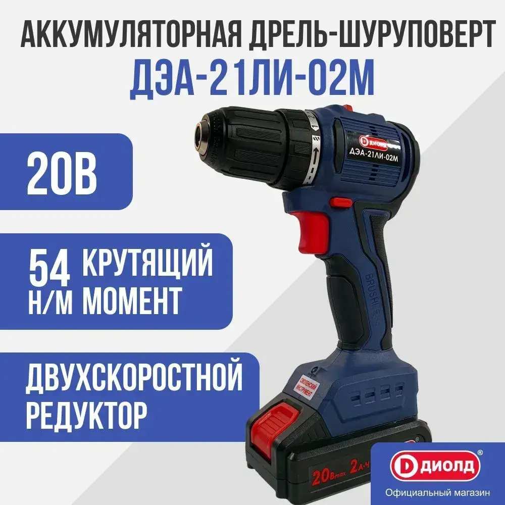 Аккумуляторный шуруповерт Диолд ДЭА-21 ЛИ-02М (кейс), 2 АКБ