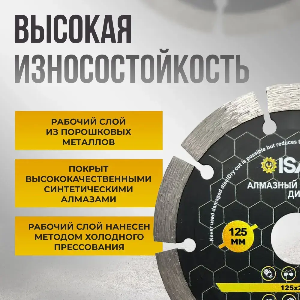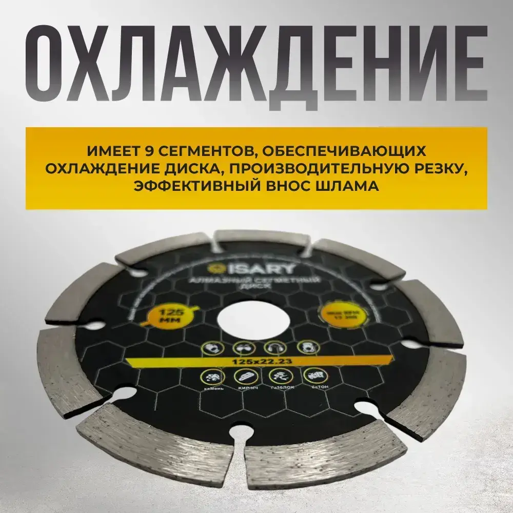 Алмазный сегментный диск 125 мм по бетону для болгарки и штробореза, сухая резка, усиленные сегменты, посадка 22.23 мм, для кирпича и камня