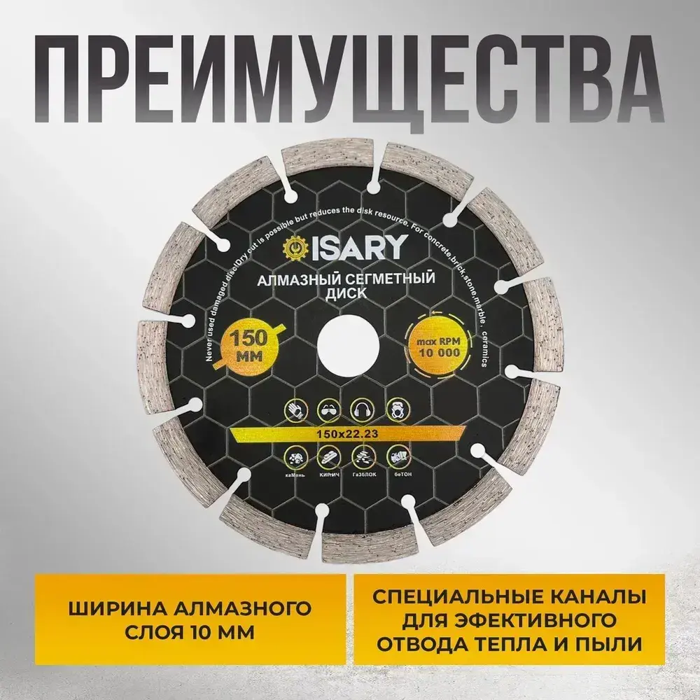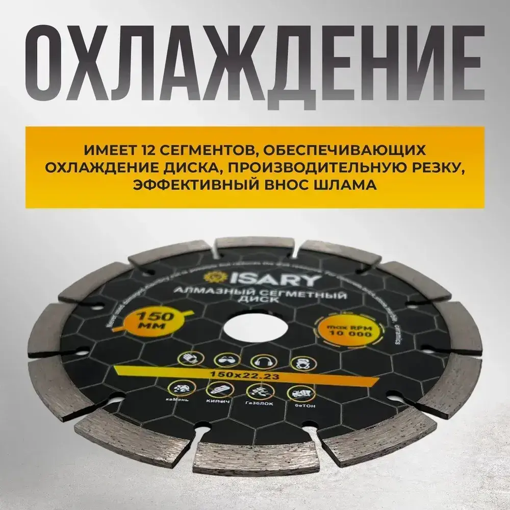 Алмазный сегментный диск 150 мм по бетону для болгарки (УШМ), для сухой резки, усиленные сегменты, посадка 22.23 мм, подходит для кирпича и камня