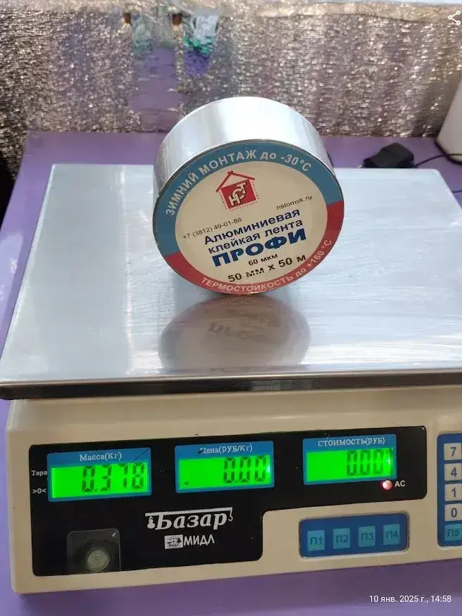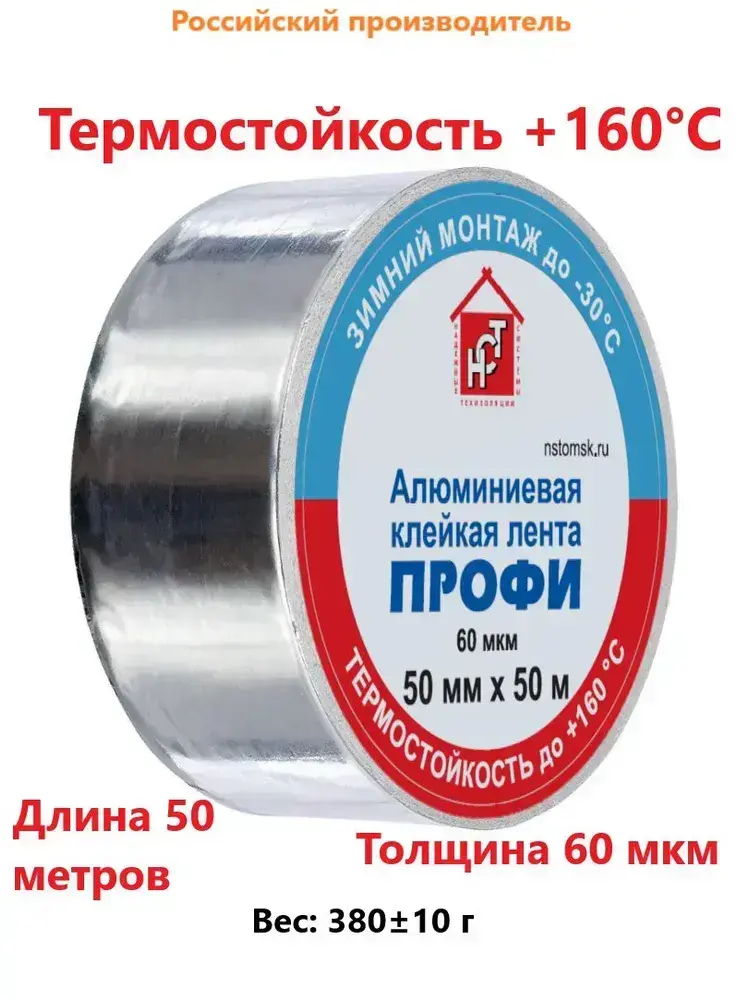 Алюминиевая термостойкая клейкая лента НСТ ПРОФИ-50мм*50м / скотч алюминиевый термостойкий 60мкм