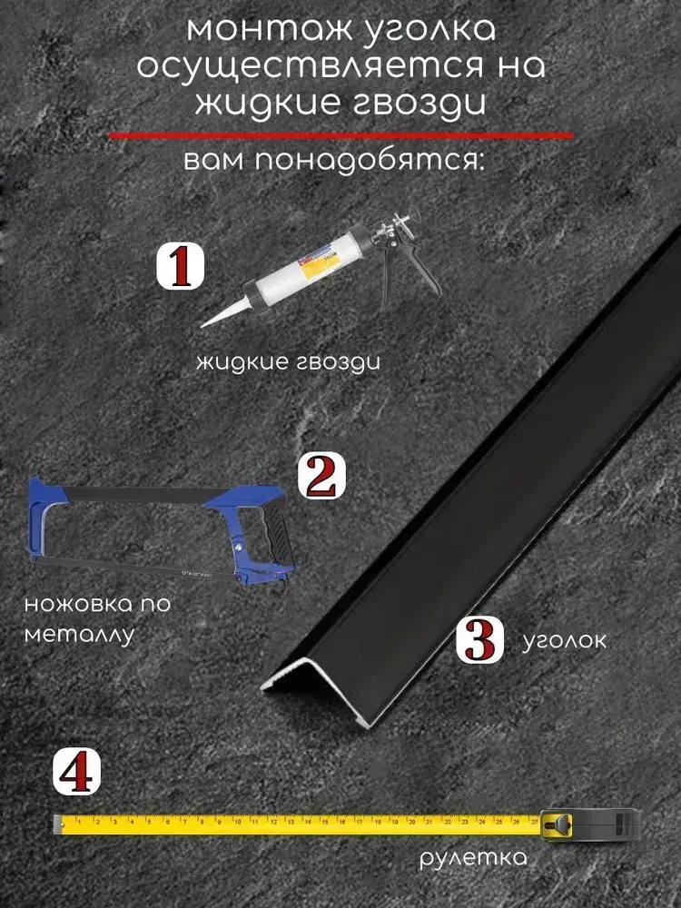 Алюминиевый анодированный декоративный уголок ПН 10х10мм черный/мат длина 2,7 м.