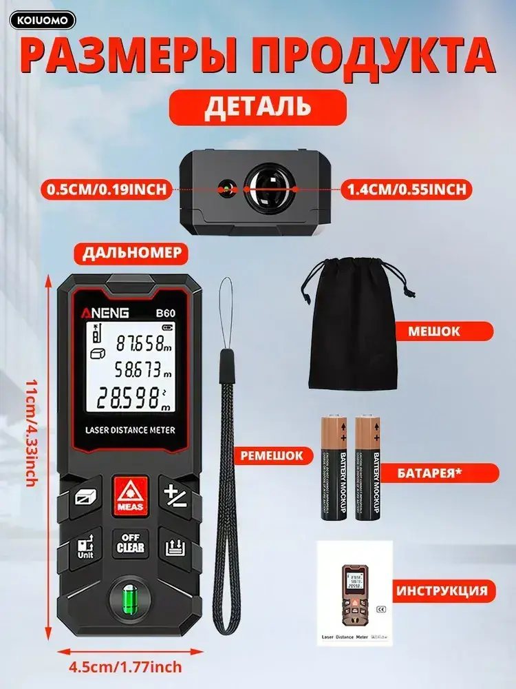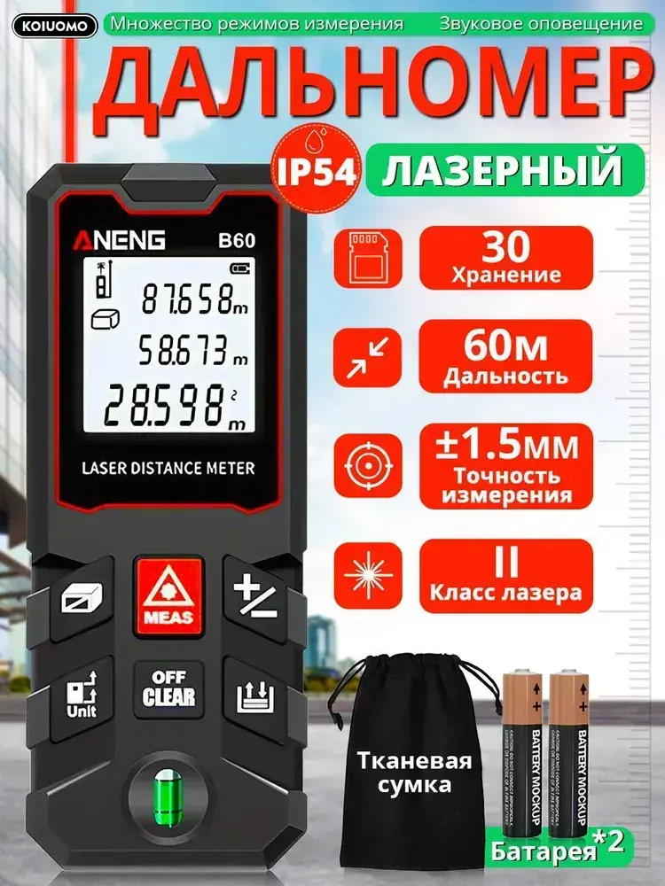 Aneng Лазерная рулетка дальномер 60м, водонепроницаемый,ADM, 1.5 мм