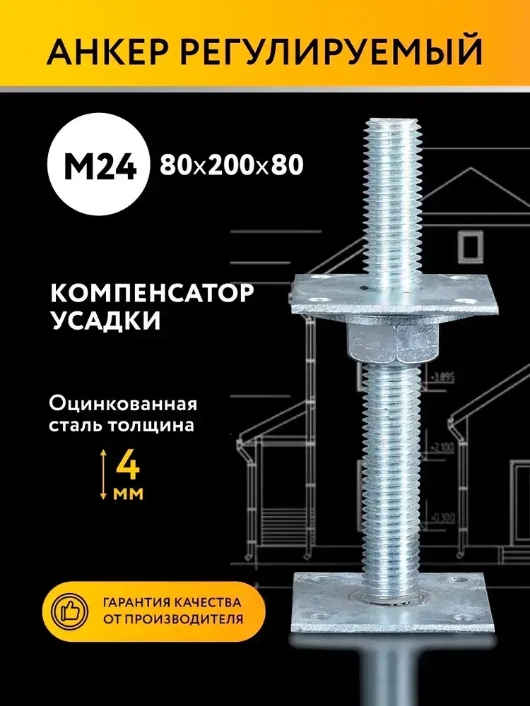 Анкер регулировочный по высоте 80x200 М24, компенсатор усадки