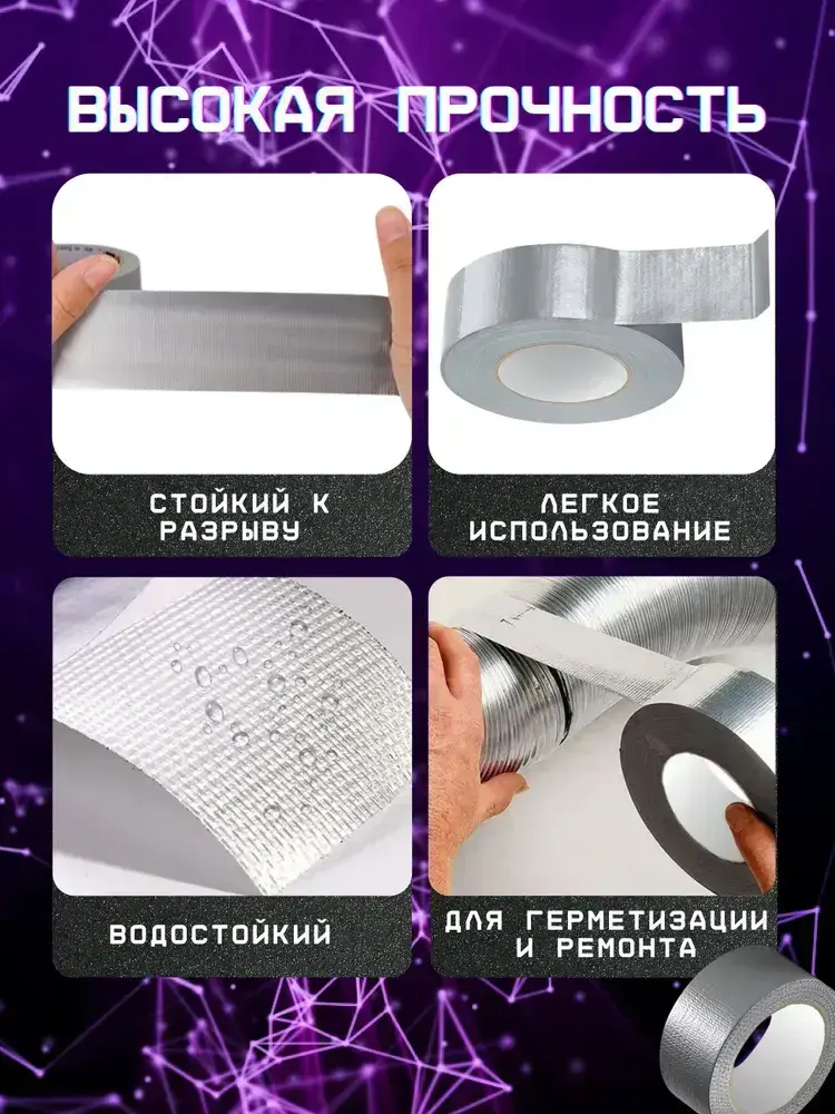 Армированный скотч 50 метров 48мм серый / серебристый 1 шт.