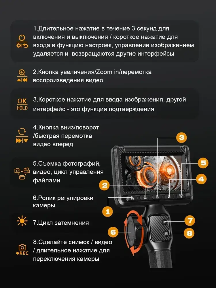 Автоэндоскоп с экраном, 6мм, 1м, поворот 180 , карта 32ГБ, водо- и маслостойкий
