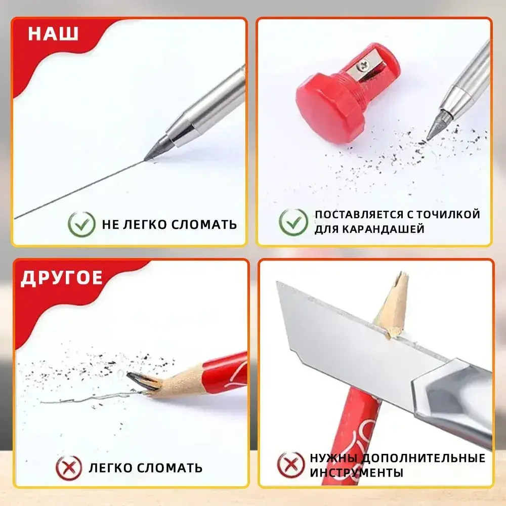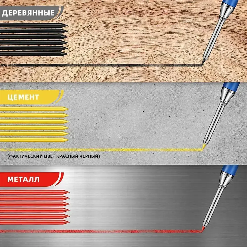 Автоматический строительный карандаш18 сменных грифелей: 9 черных, 9 красных
