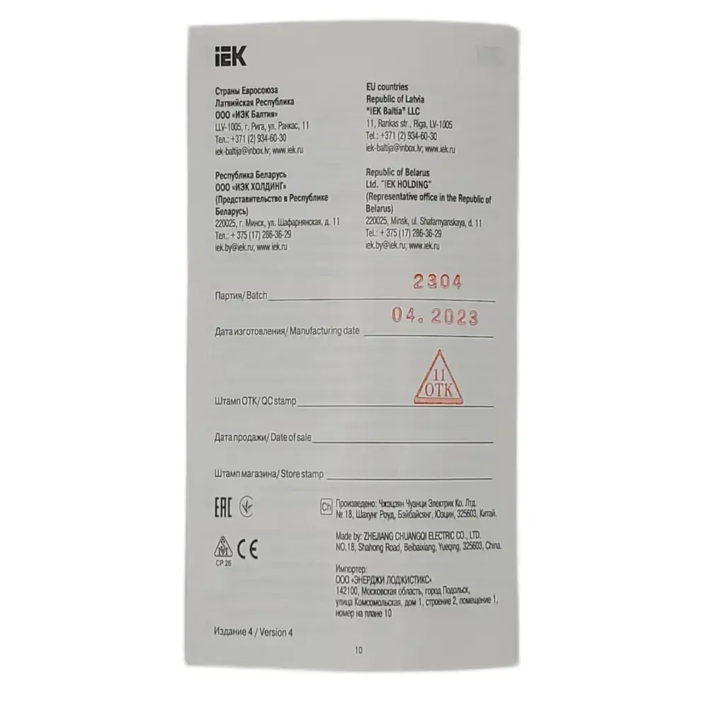 Автоматический выключатель IEK серия KARAT ВА47-29 1р 10А 4.5кА MVA20-1-010-C - 1шт