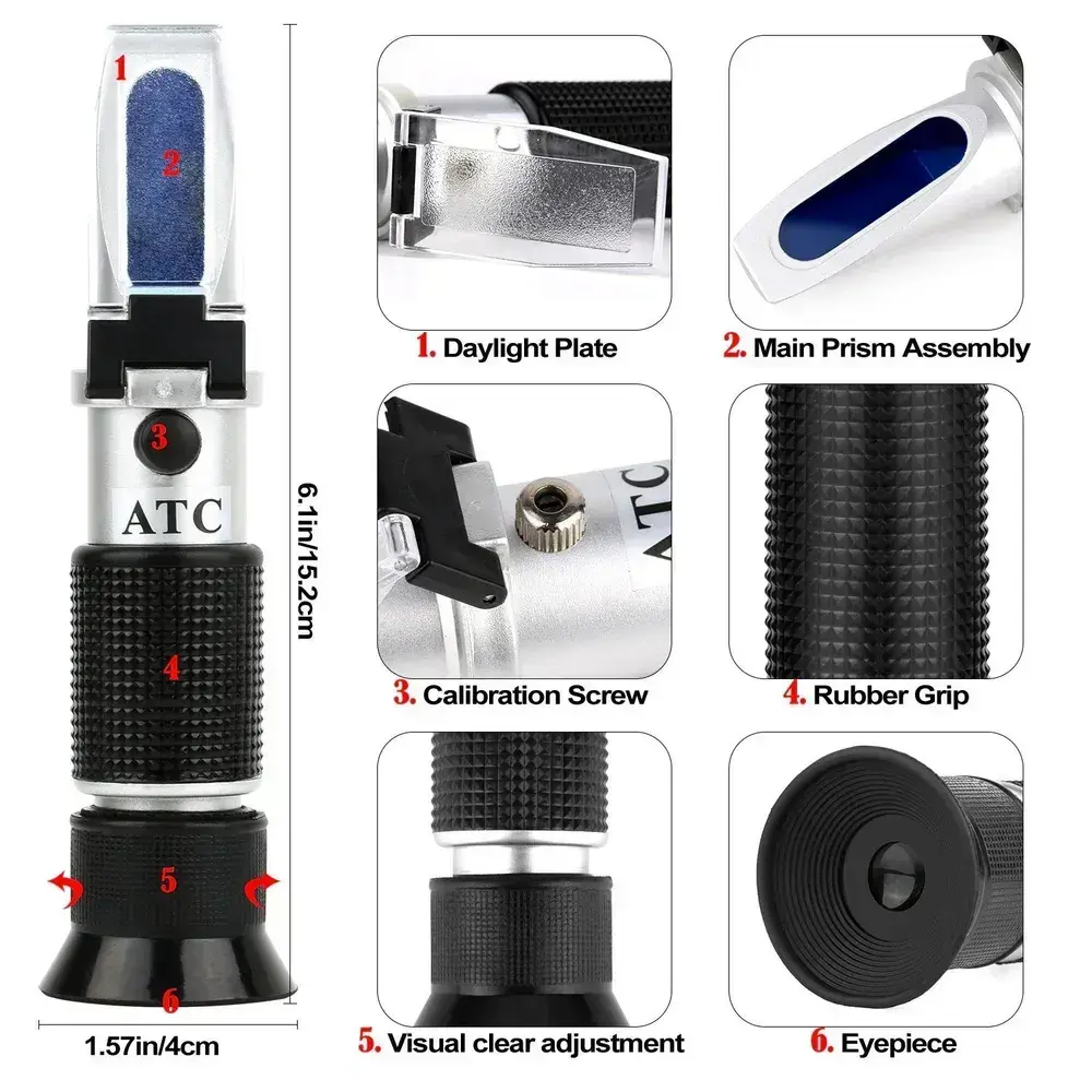 Автомобильный рефрактометр 4 в 1 - (RZ115), для антифриза, охлаждающей жидкости, электролита и мочевины
