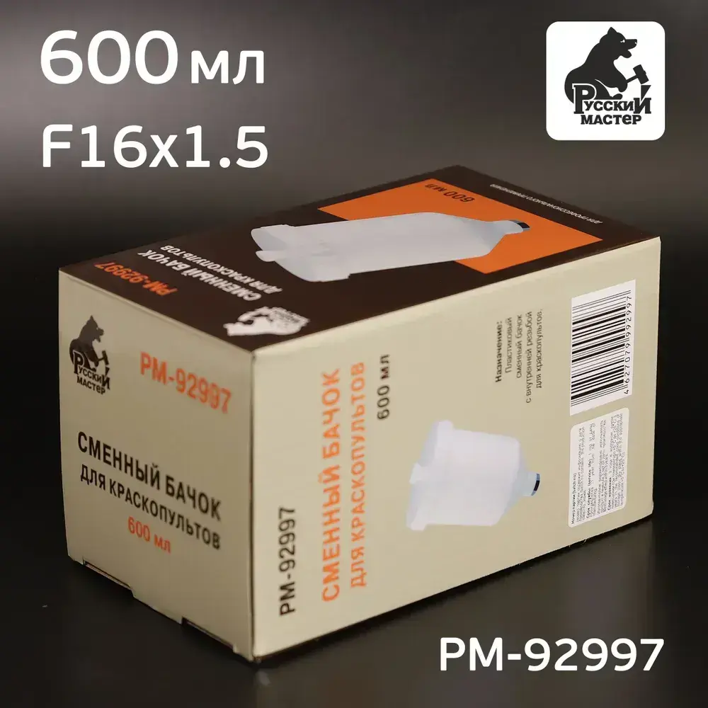 Бачок пластиковый (600мл; F16х1.5) для краскопульта Русский Мастер, Iwata Bellaria W-400 (РМ-92997)
