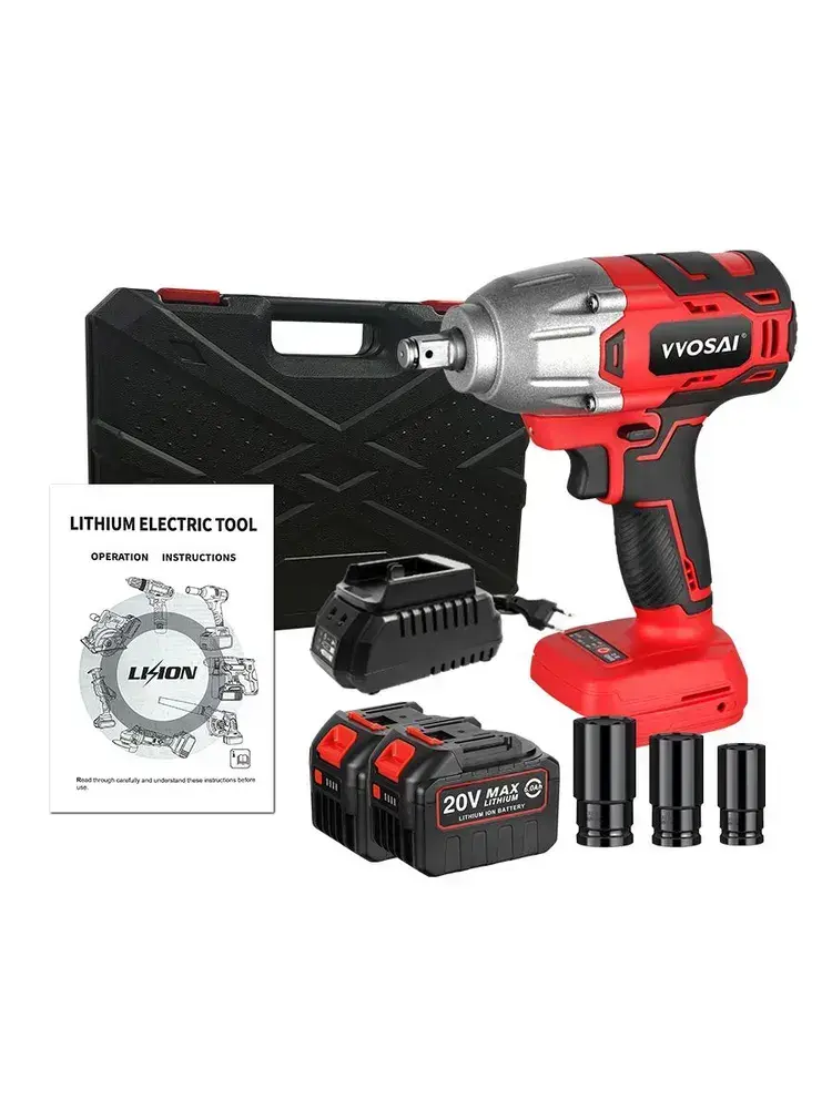 Бесщеточный Гайковерт Электроинструмент VVOSAI WS-L5-D2-3P-SX, 20В 600Нм, 2xLi-ion, ЗУ, кейс для хранения, 1 головка 17 19 21мм