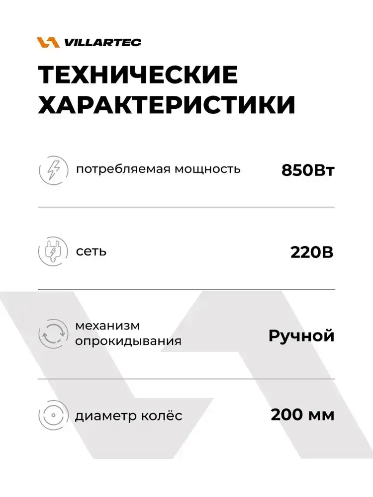 Бетономешалка строительная 130 л VILLARTEC CM-130С CART