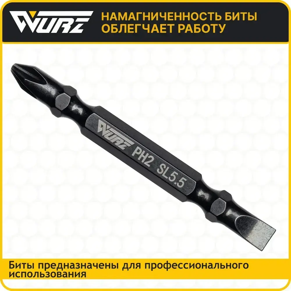 Бита PH2/SL5,5 x 65мм S3 3шт. двусторонняя намагниченная WURZ 2610-3