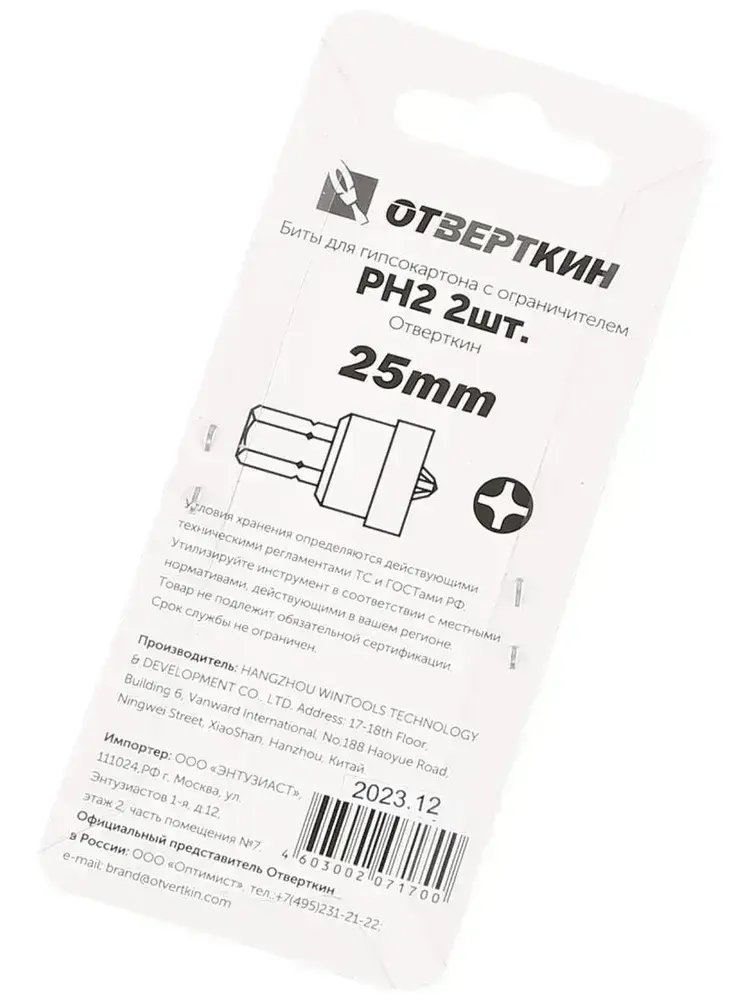 Биты для гипсокартона с ограничителем PH2 2шт. Отверткин