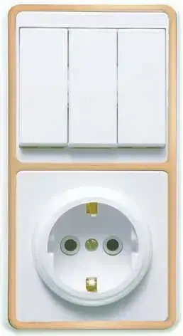 Блок скрытой установки выключатель трехклавишный + розетка с заземлением БКВР-033 Бэлла Кунцево, арт. 5844