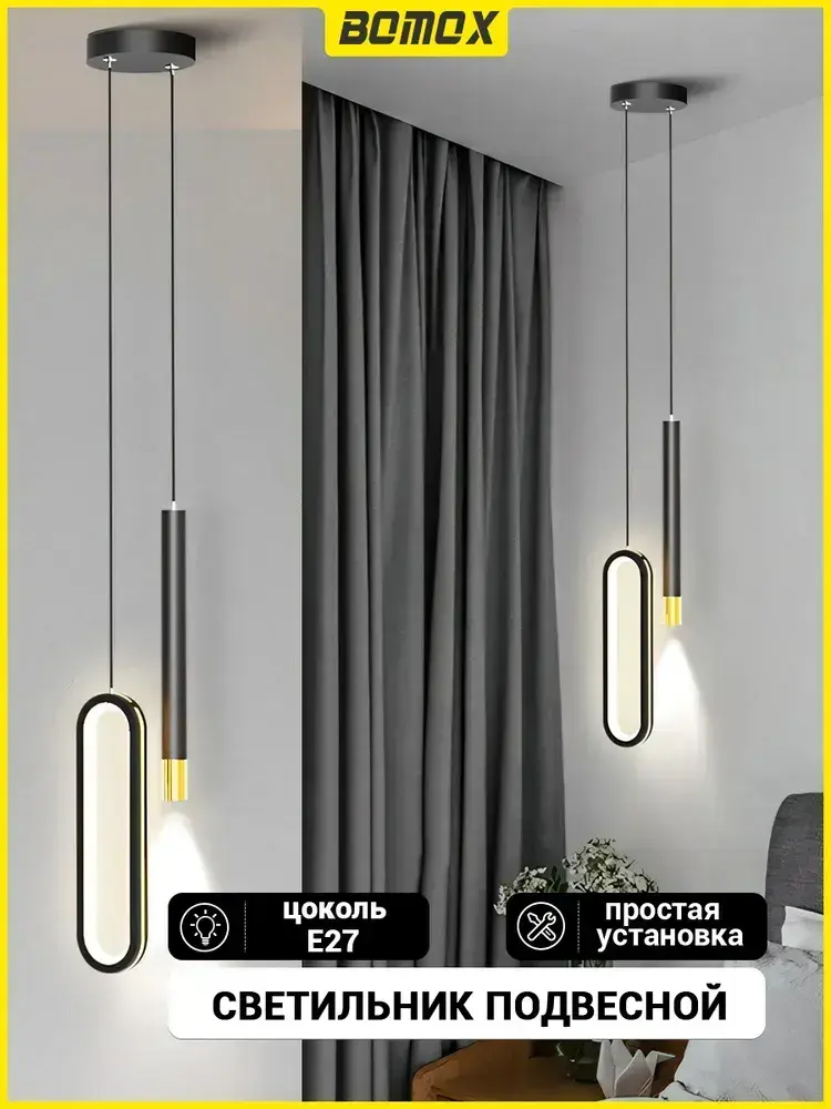 BOMOX Подвесной светильник лофт, светодиодный люстра потолочная, 3 режима освещения (3000-6000 К)