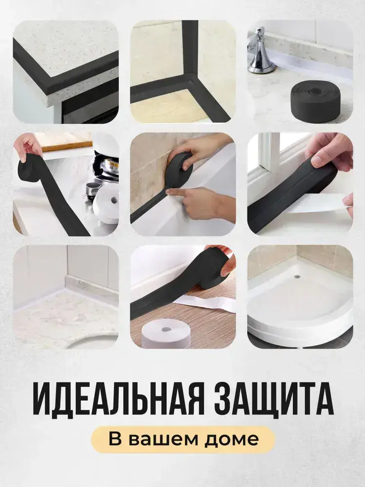 Бордюрная лента для ванны и кухни 22мм 3,2м черная. Самоклеящаяся декоративная клейкая лента, декоративный скотч