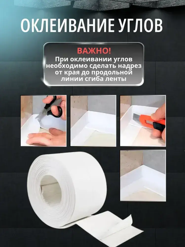 Бордюрная лента для ванны и кухни 38мм 3,2м. Самоклеящаяся декоративная клейкая лента, белая