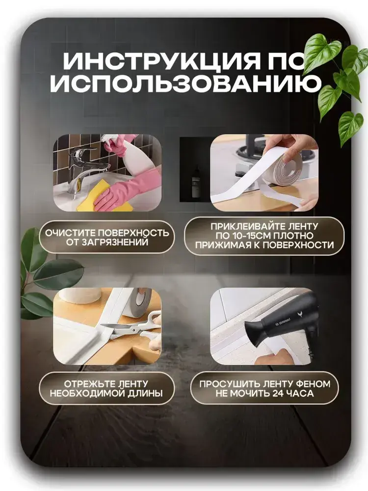 Бордюрная лента для ванны и кухни. Размер 60мм х 3,2м. Самоклеющаяся декоративная клейкая лента, декоративный скотч