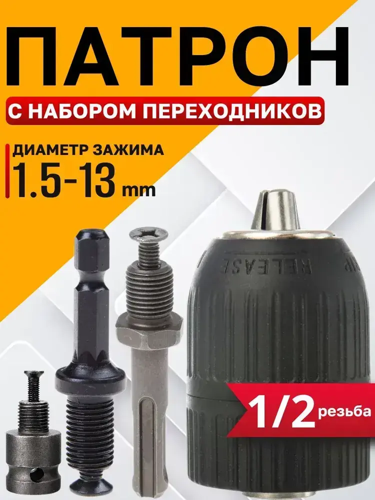 Быстрозажимный патрон для дрели, гайковерта, перфоратора,1/2+3 насадки