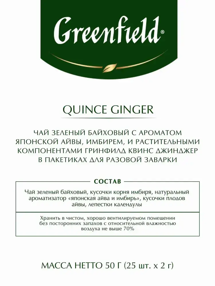 Чай в пакетиках зелёный Greenfield Quince Ginger, 25 шт