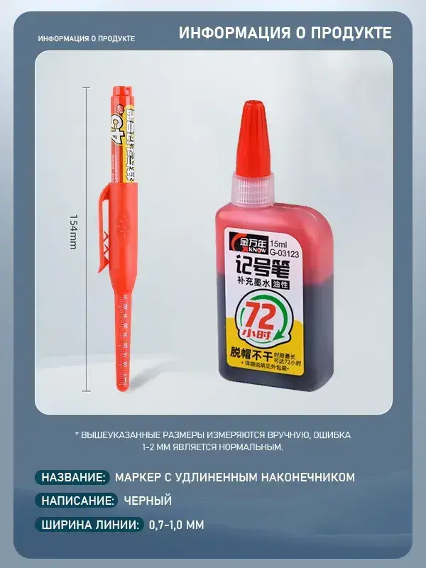 Чернила для заправки перманентных маркеров (красные, 15 мл), 1 шт. + красный строительный маркер, 1 шт.