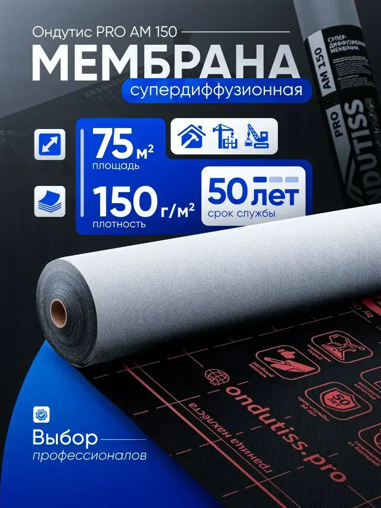 Cупердиффузионная гидроизоляционная мембрана для кровли и стен Ондутис ПРО АМ 150 (Ondutiss PRO AM 150), 75м2