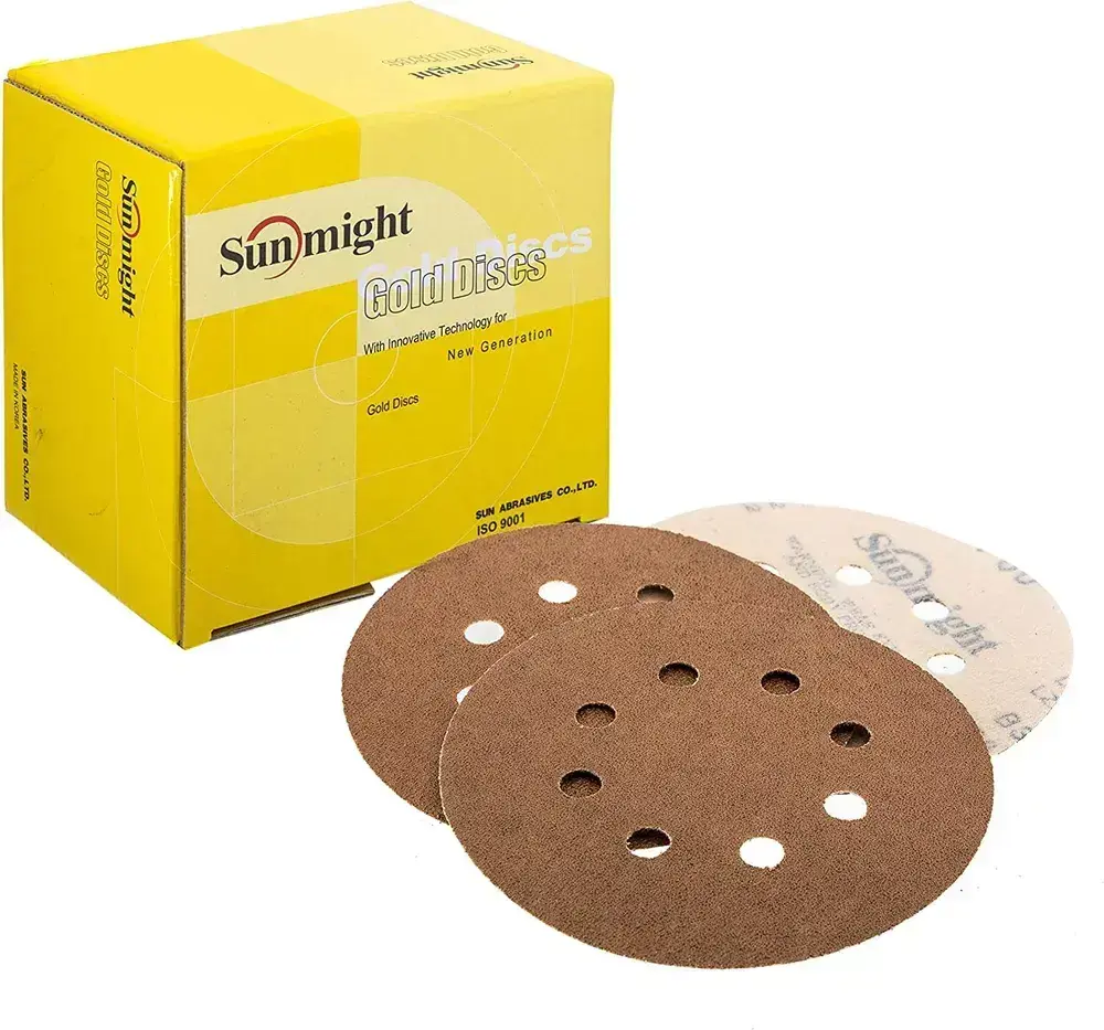 D-125; P120; 100 шт. GOLD, 8 отверстий. Шлифовальные круги 125мм на липучке, SUNMIGHT: 125 мм; P120; 100 шт.