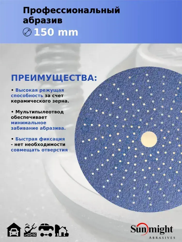 D-150; P120; 50 шт. CERAMIC. Шлифовальные круги на липучке SUNMIGHT: 150 мм; P120; 50 шт.