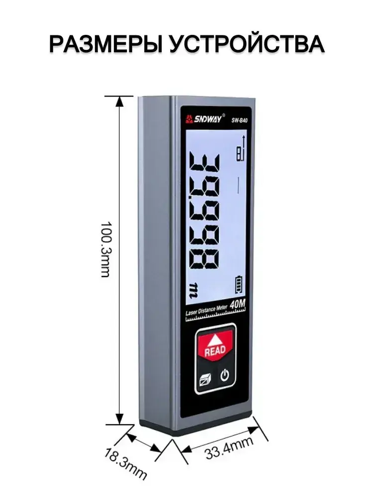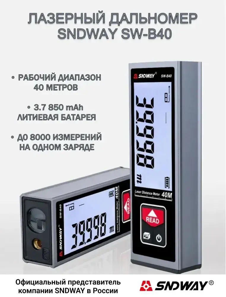 Дальномер лазерный SNDWAY SW-B40, 40 метров, питание от встроенного аккумулятора