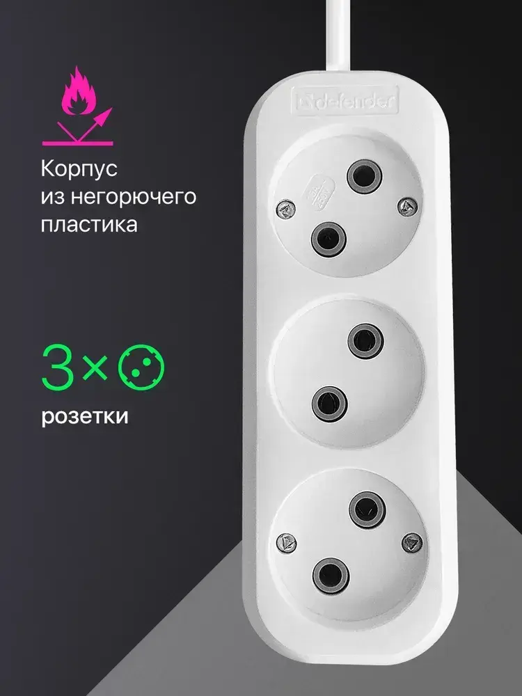 Defender Удлинитель сетевой 10 м белый, 3 розетки, без заземления