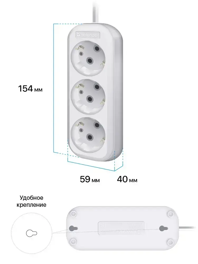DEFENDER Удлинитель сетевой 5м, 3 розетки с заземлением, 16А